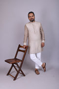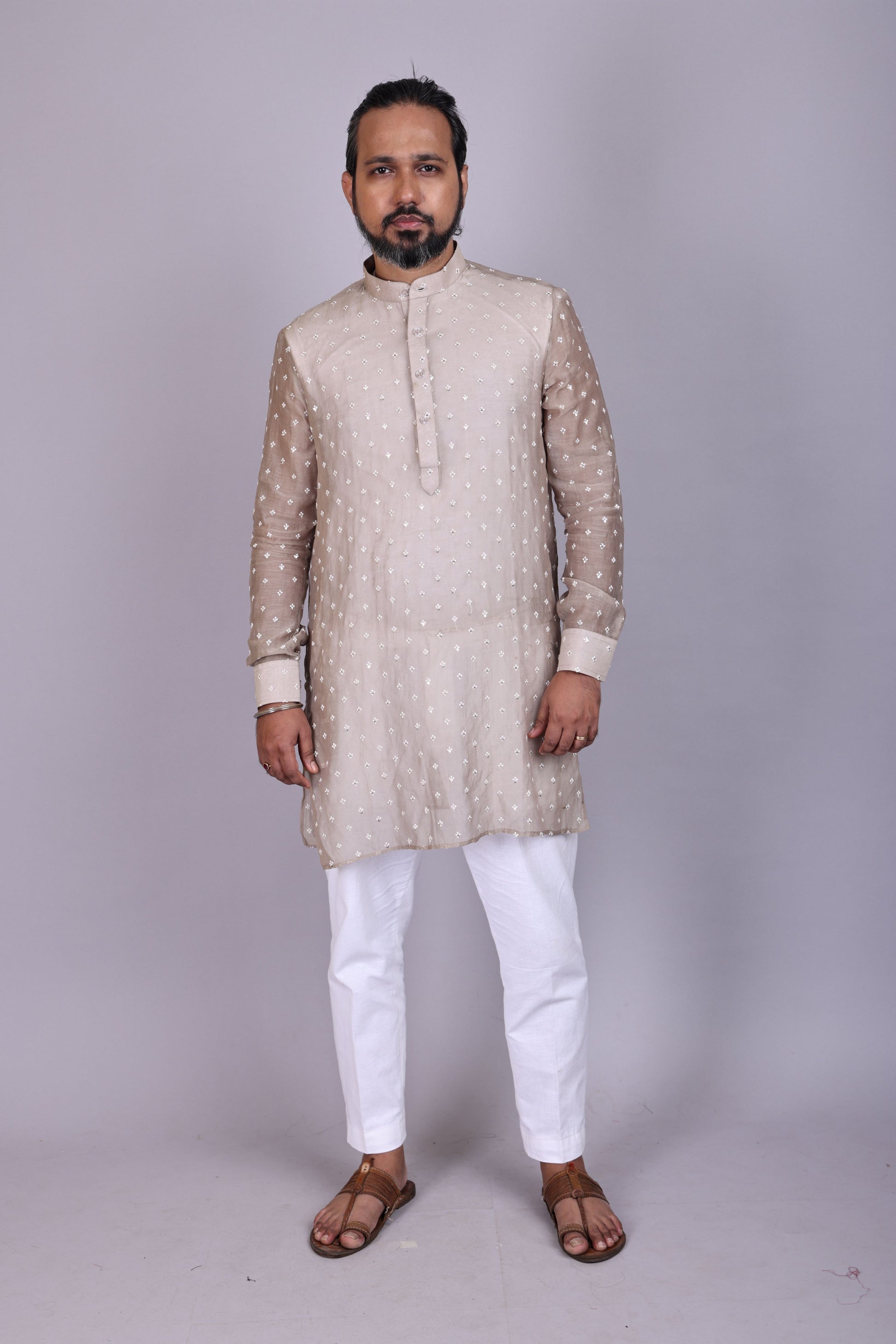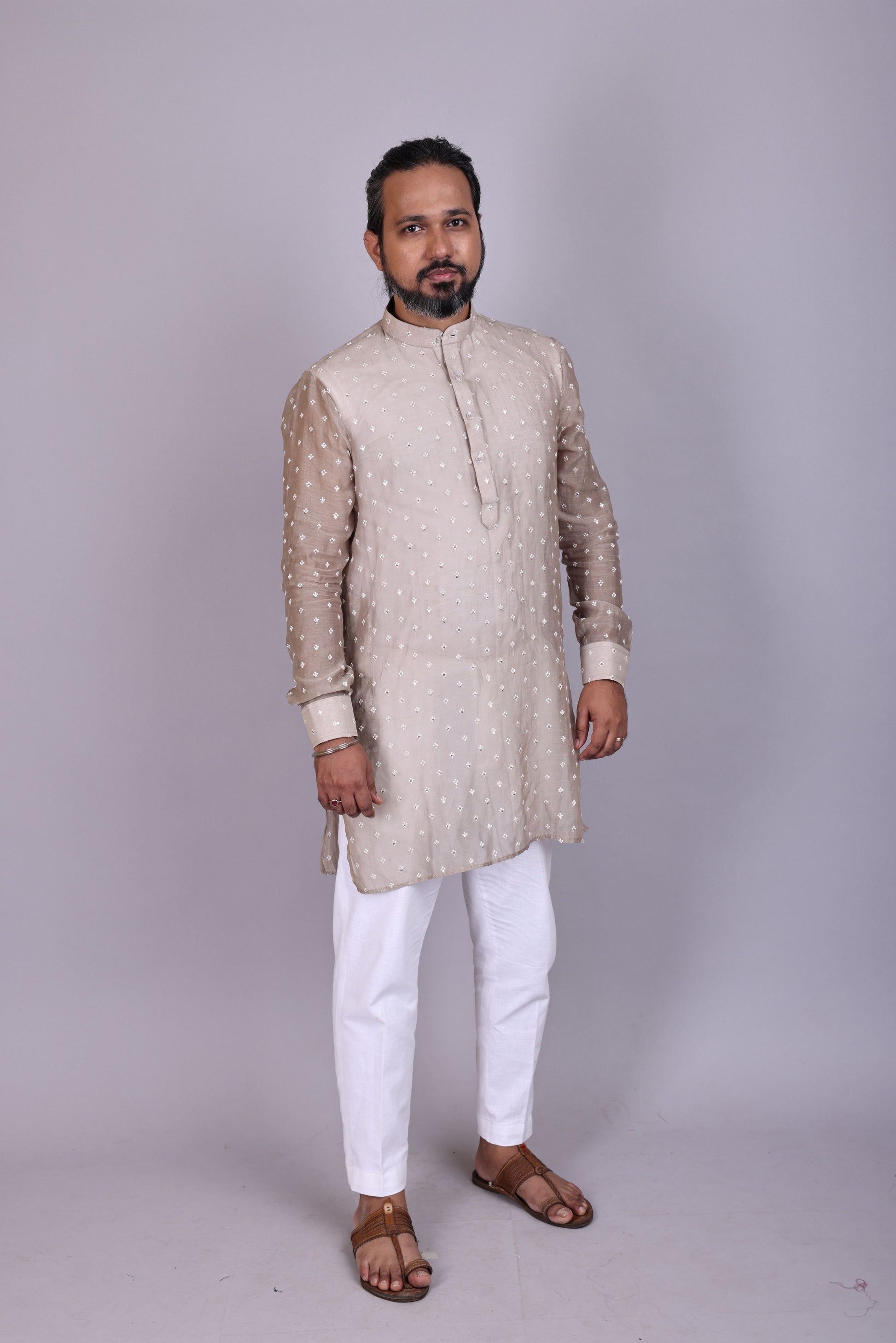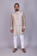 Classic Nude Tone Chanderi Kurta with Fine Thread Embroidery
